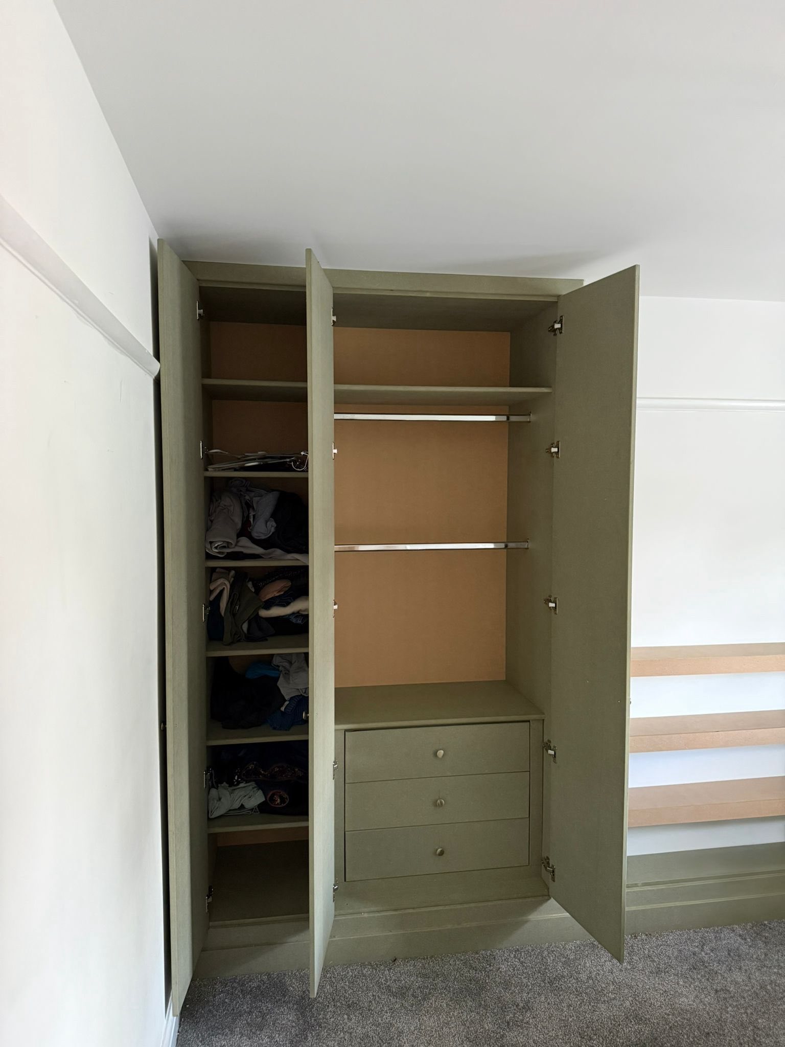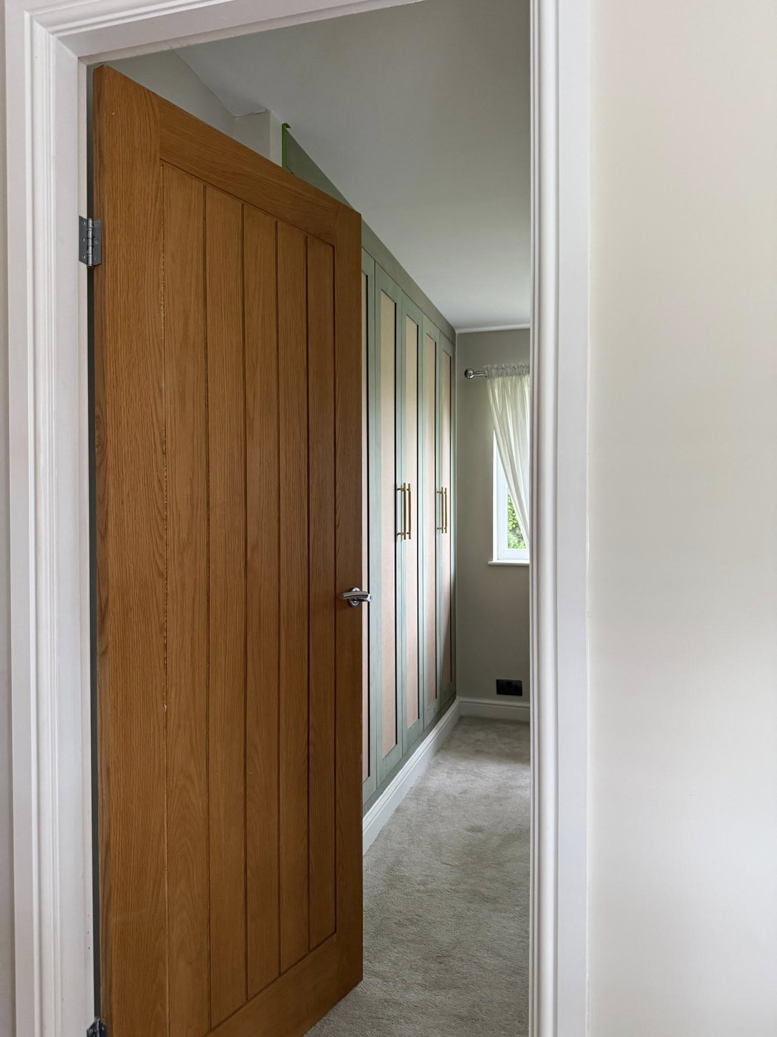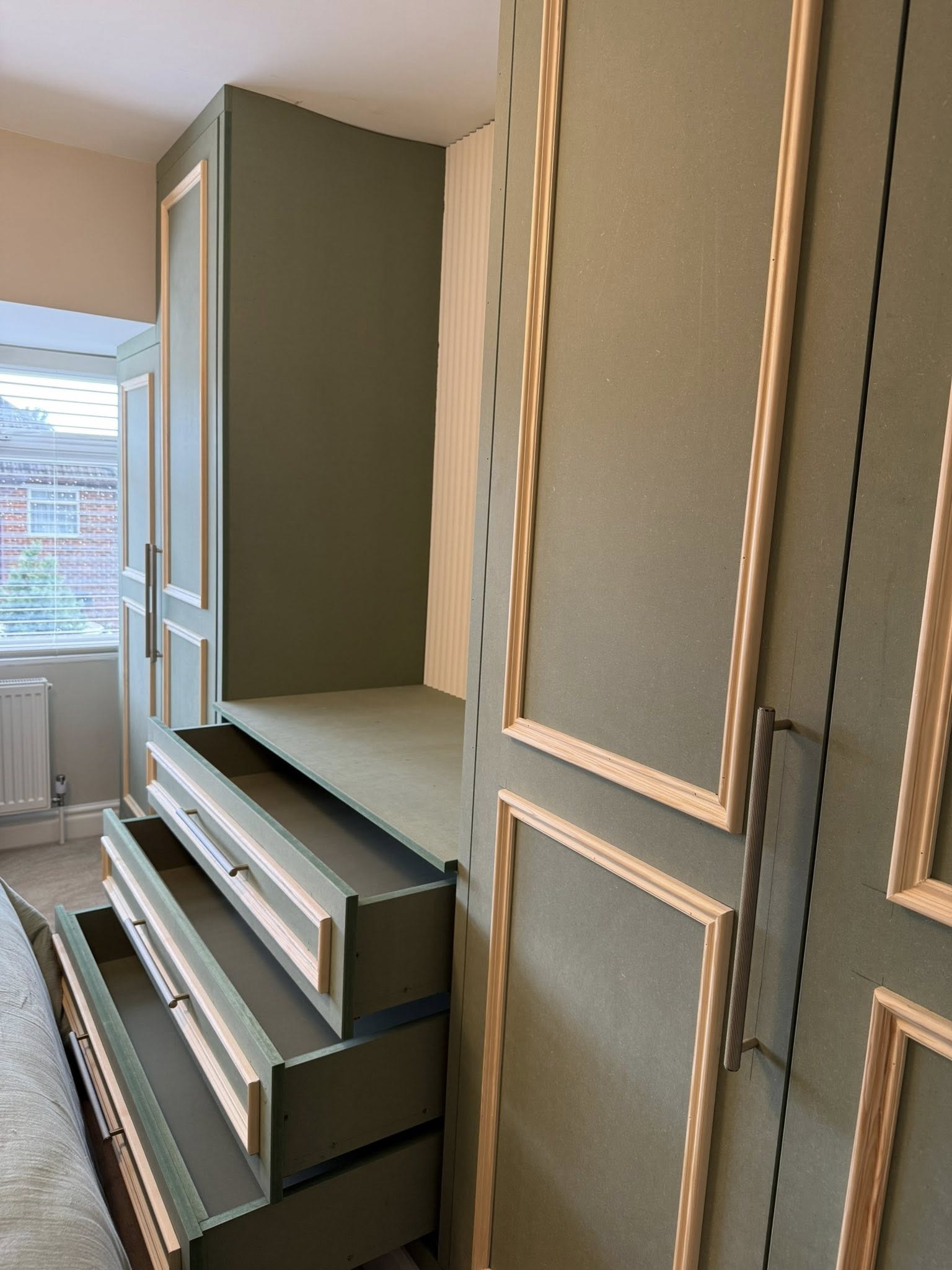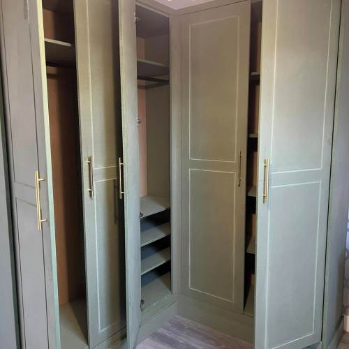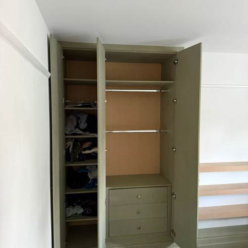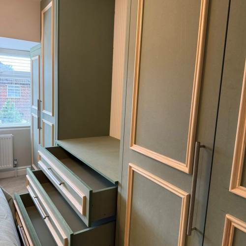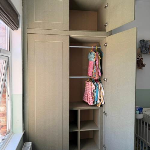 " We recently had Rhys in to build some wardrobes around a chimney breast in a bedroom. The whole process was incredibly smooth from design to build. Rhys took the time to understand exactly what we wanted and offered his professional opinion to make sure we got a result that not only looked good but was incredibly functional! We would recommend Rhys and will be having him to fit some more wardrobes in another bedroom once the room is ready. Thank you! "