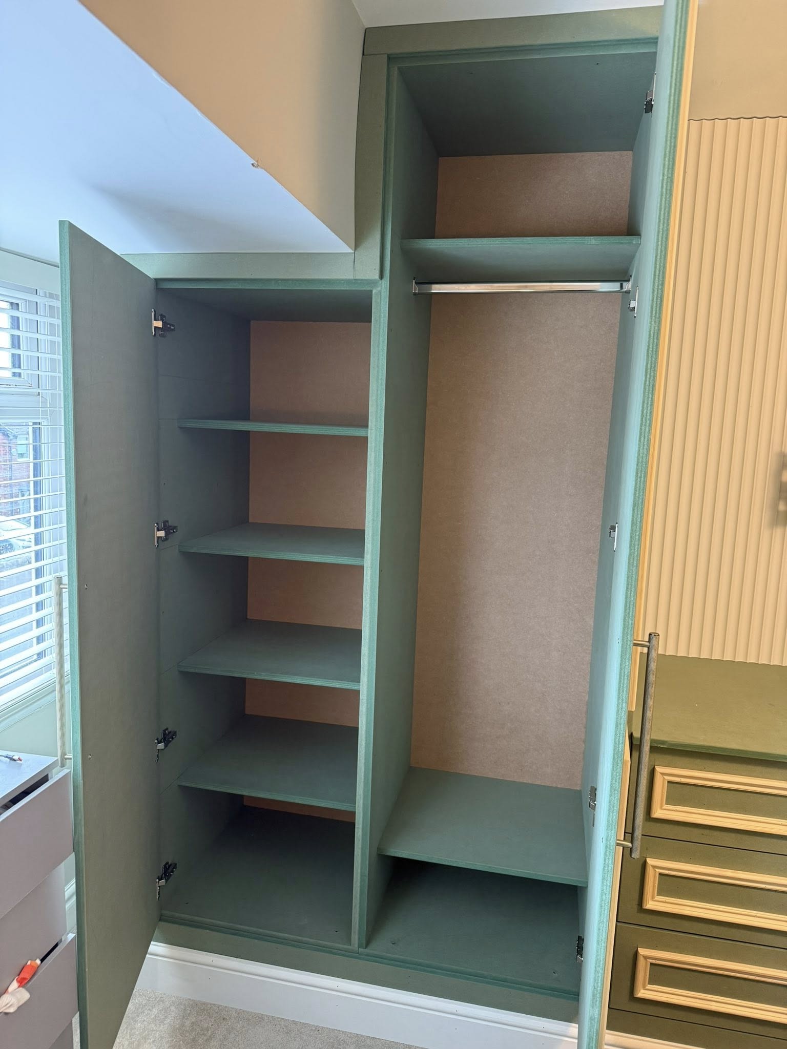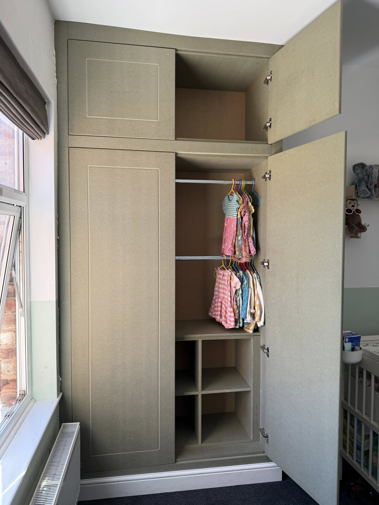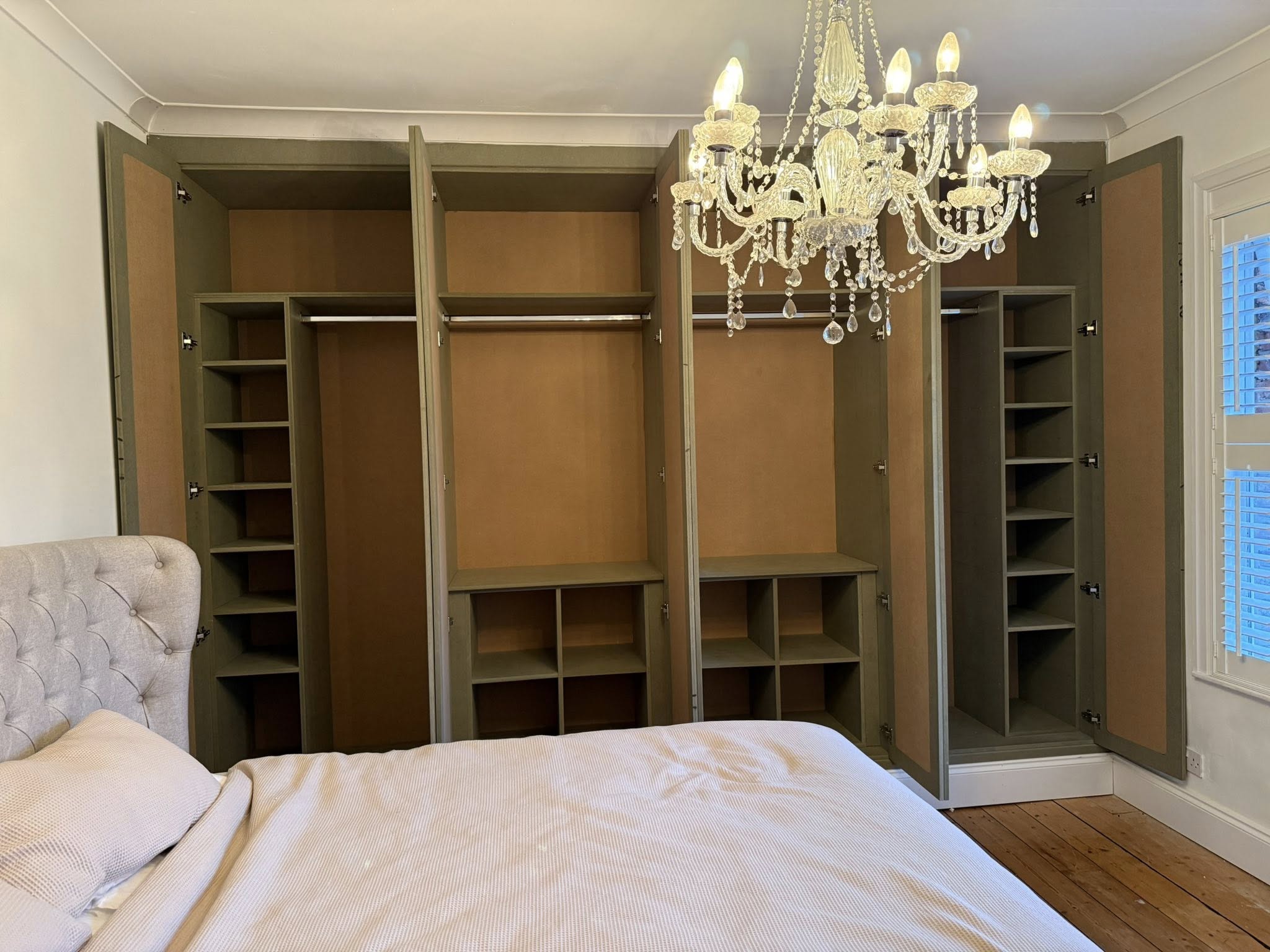 " We recently had Rhys in to build some wardrobes around a chimney breast in a bedroom. The whole process was incredibly smooth from design to build. Rhys took the time to understand exactly what we wanted and offered his professional opinion to make sure we got a result that not only looked good but was incredibly functional! We would recommend Rhys and will be having him to fit some more wardrobes in another bedroom once the room is ready. Thank you! "