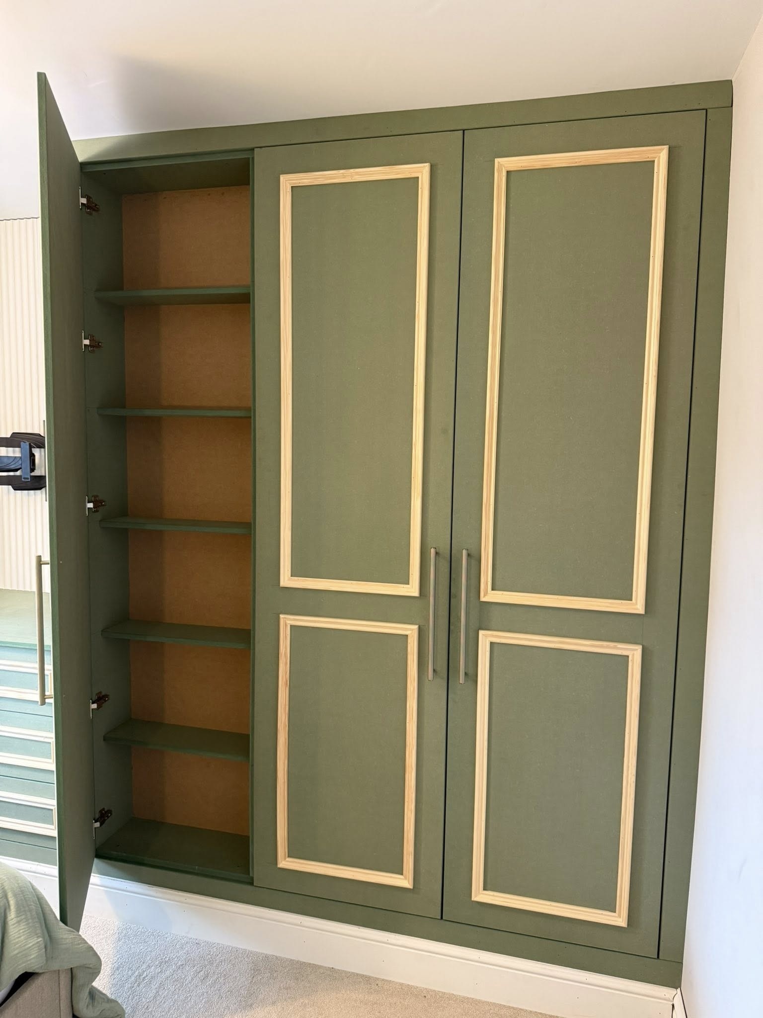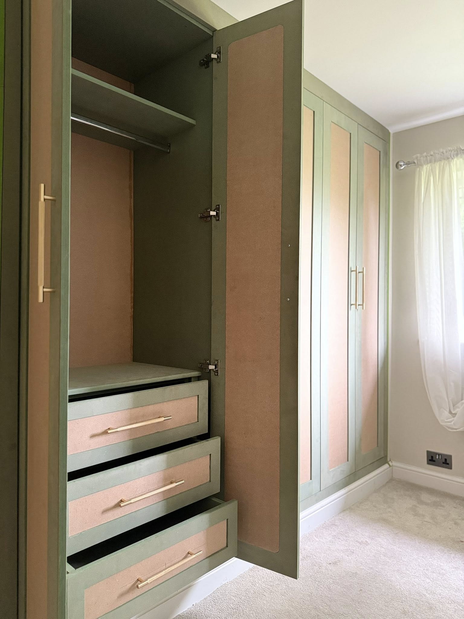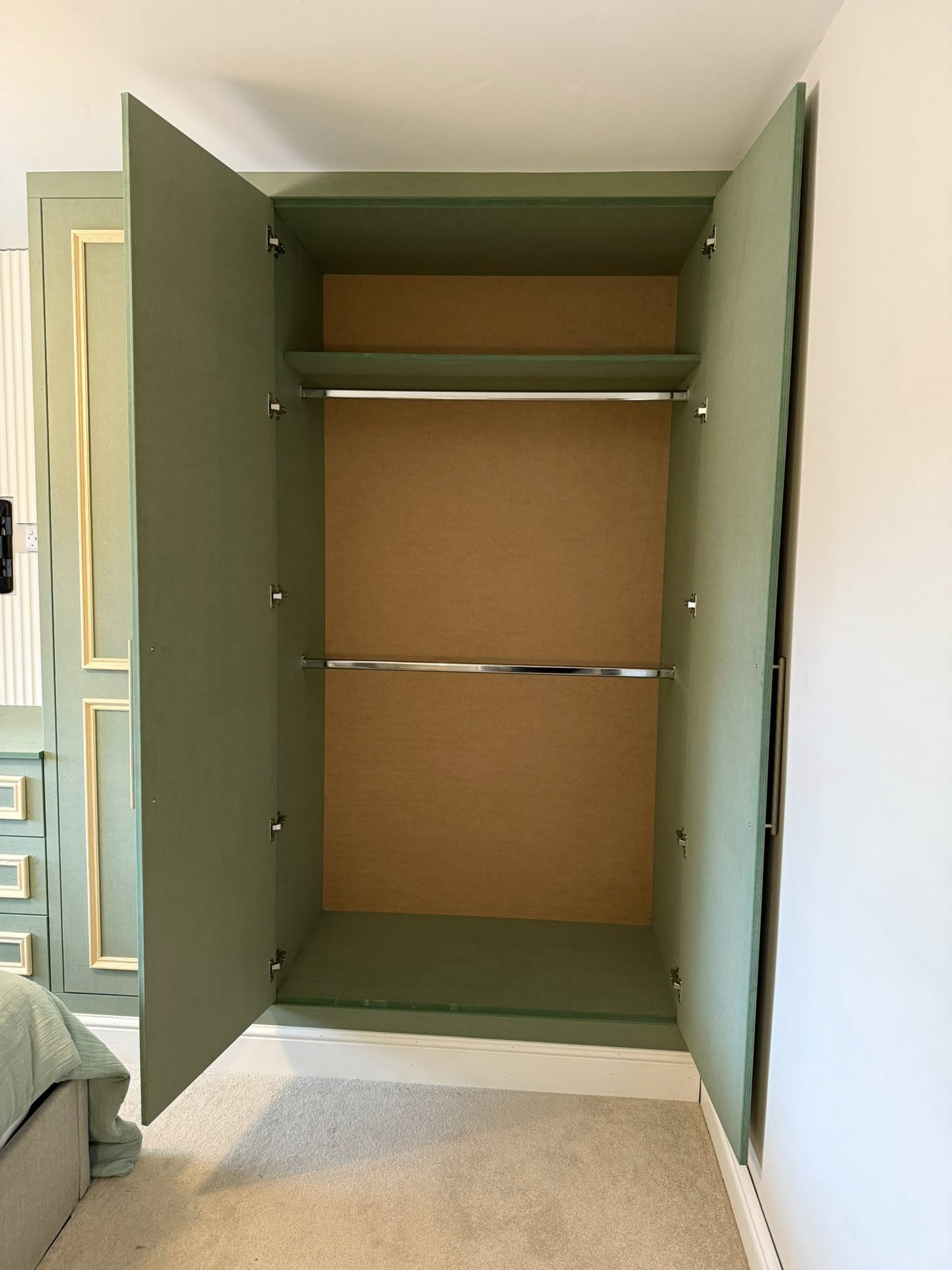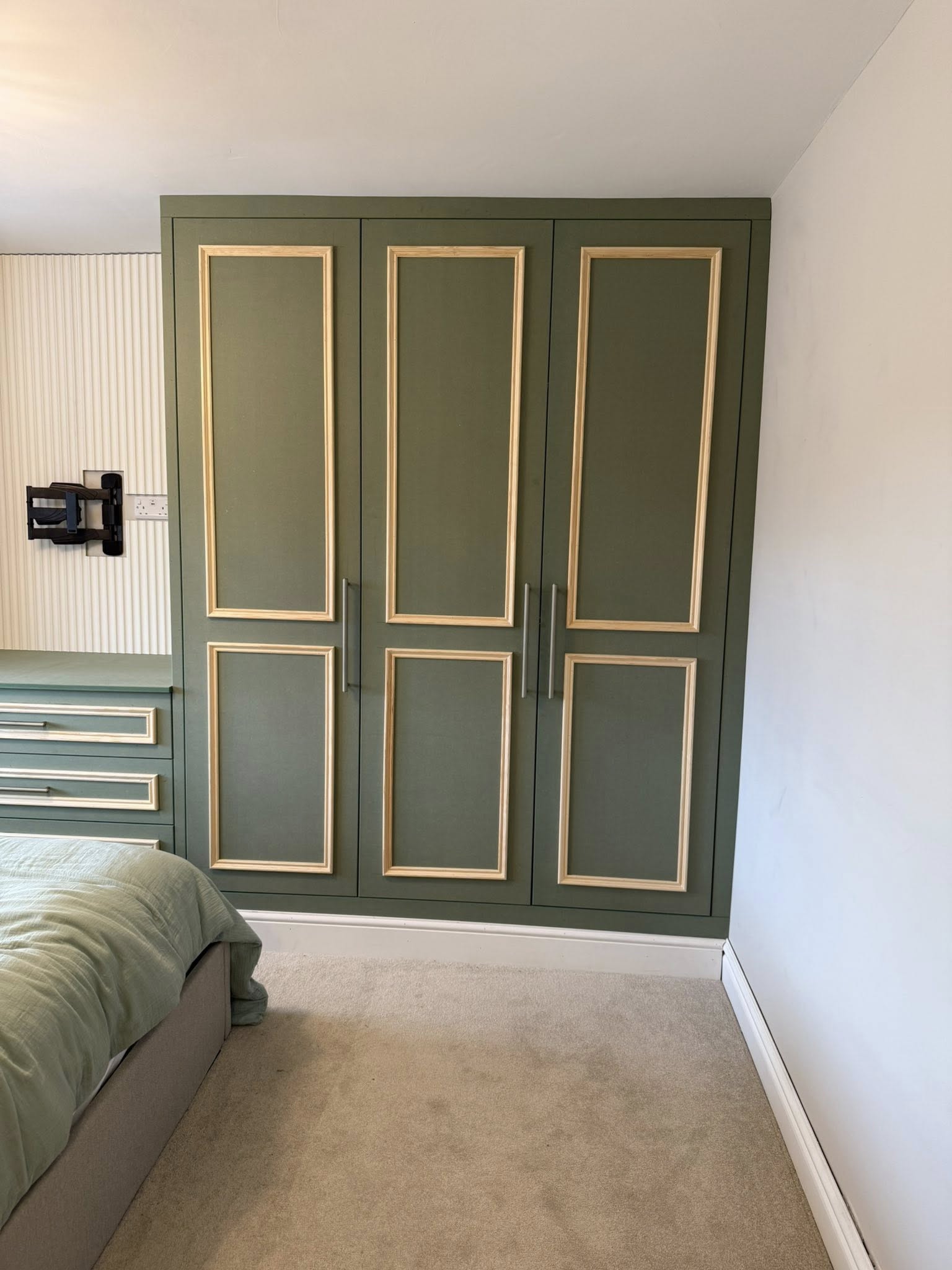 " We recently had Rhys in to build some wardrobes around a chimney breast in a bedroom. The whole process was incredibly smooth from design to build. Rhys took the time to understand exactly what we wanted and offered his professional opinion to make sure we got a result that not only looked good but was incredibly functional! We would recommend Rhys and will be having him to fit some more wardrobes in another bedroom once the room is ready. Thank you! "